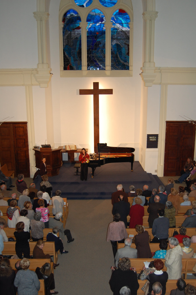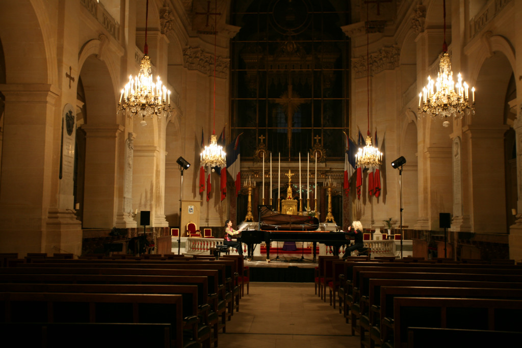 With Laure Favre-Khan before a concert for two pianos in the impressive setting of the Invalides Cathedral in Paris