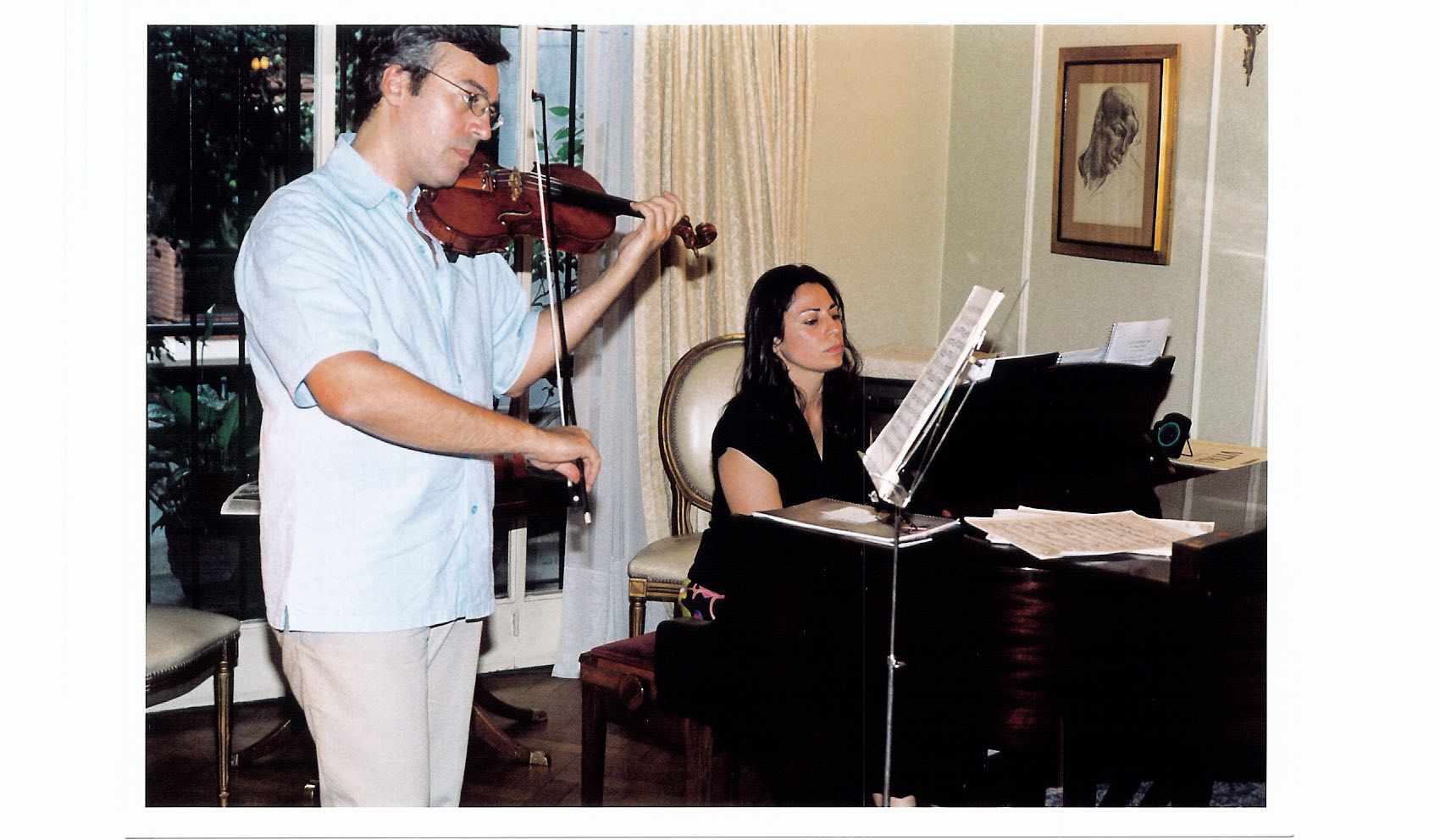 In her Buenos Aires home, rehearsal with the Argentinian violinist Pablo Saravi.