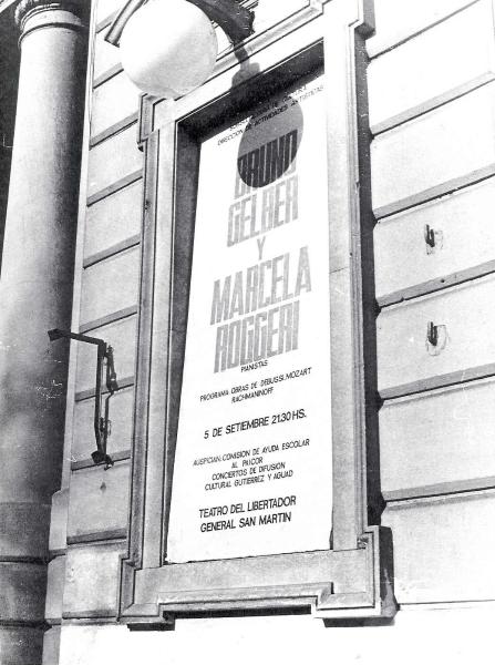 Concert at San Martin Theatre in Buenos Aires. Bruno Gelber and Marcela Roggeri played Mozart and Rachmaninoff pieces.