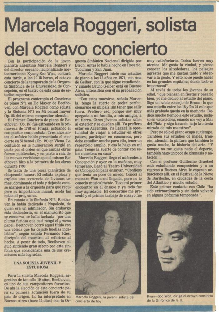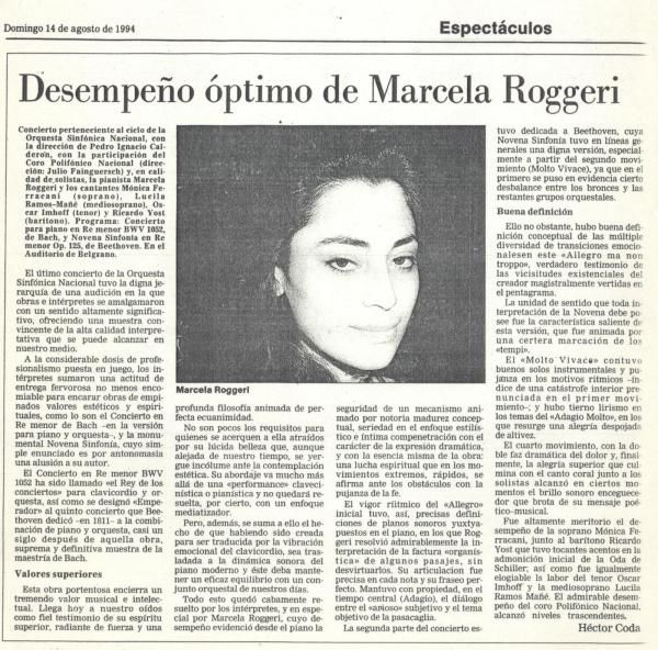 Concierto de Marcela Roggeri en el Auditorio de Belgrano, Buenos Aires, Argentina. Concierto para piano en Re menor de Bach y Novena sinfonía en Re Menor de Beethoven junto a la Orquesta Sinfónica Nacional.