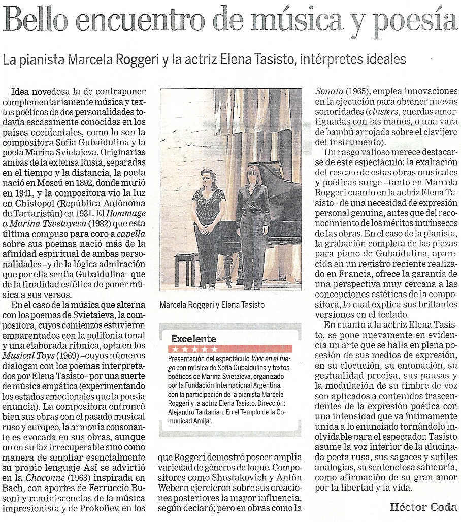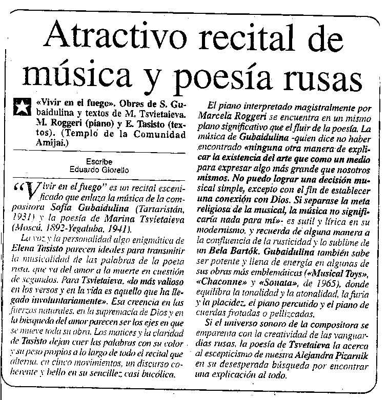 (...) It's to the great credit of Argentinean pianist, Marcela Roggeri, that Guba?dulina's pleasing and almost effortless integrity and vision remain with the listener long after hearing the 14 pieces from beginning to end: deeply satisfying.