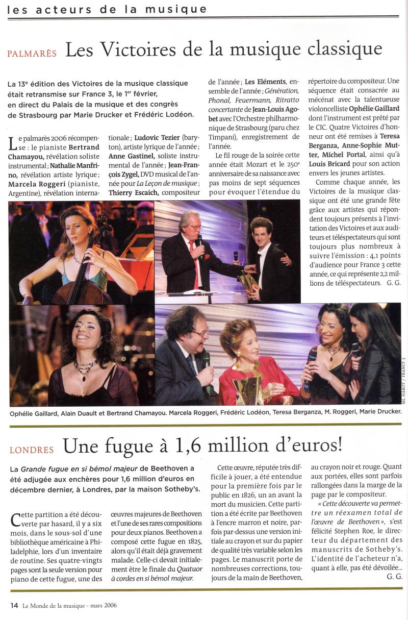 Con motivo de su reciente galardón, el periodista Mariano Abraham entrevistó a Marcela Roggeri el día 6 de febrero de 2006, desde el programa de Rolando Hanglin RH positivo.