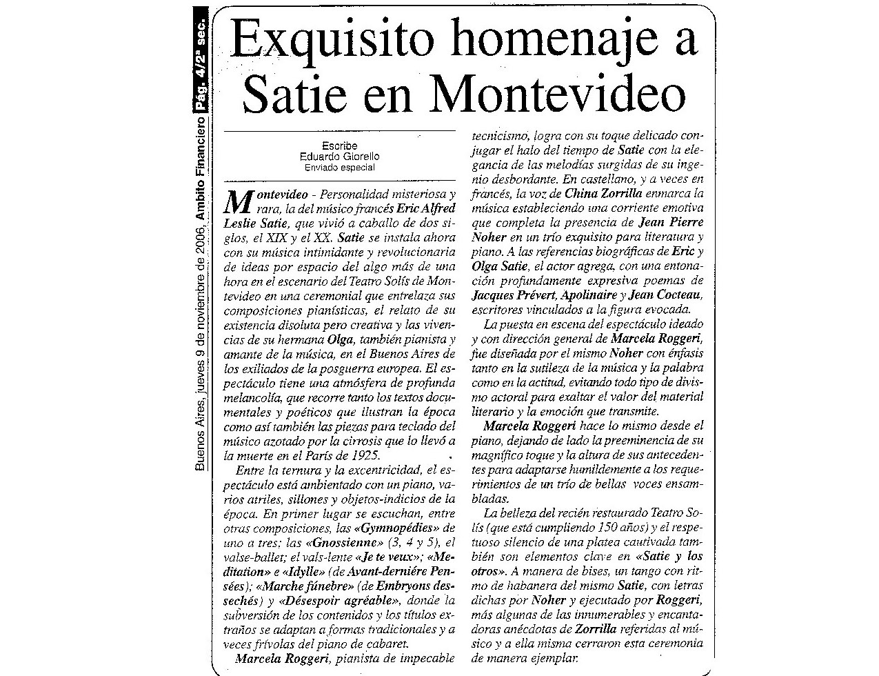 Radio interview with BBCMundo, the Spanish speaking radio network of the BBC, in the programme Studio 834, focusing mainly on the Erik Satie work