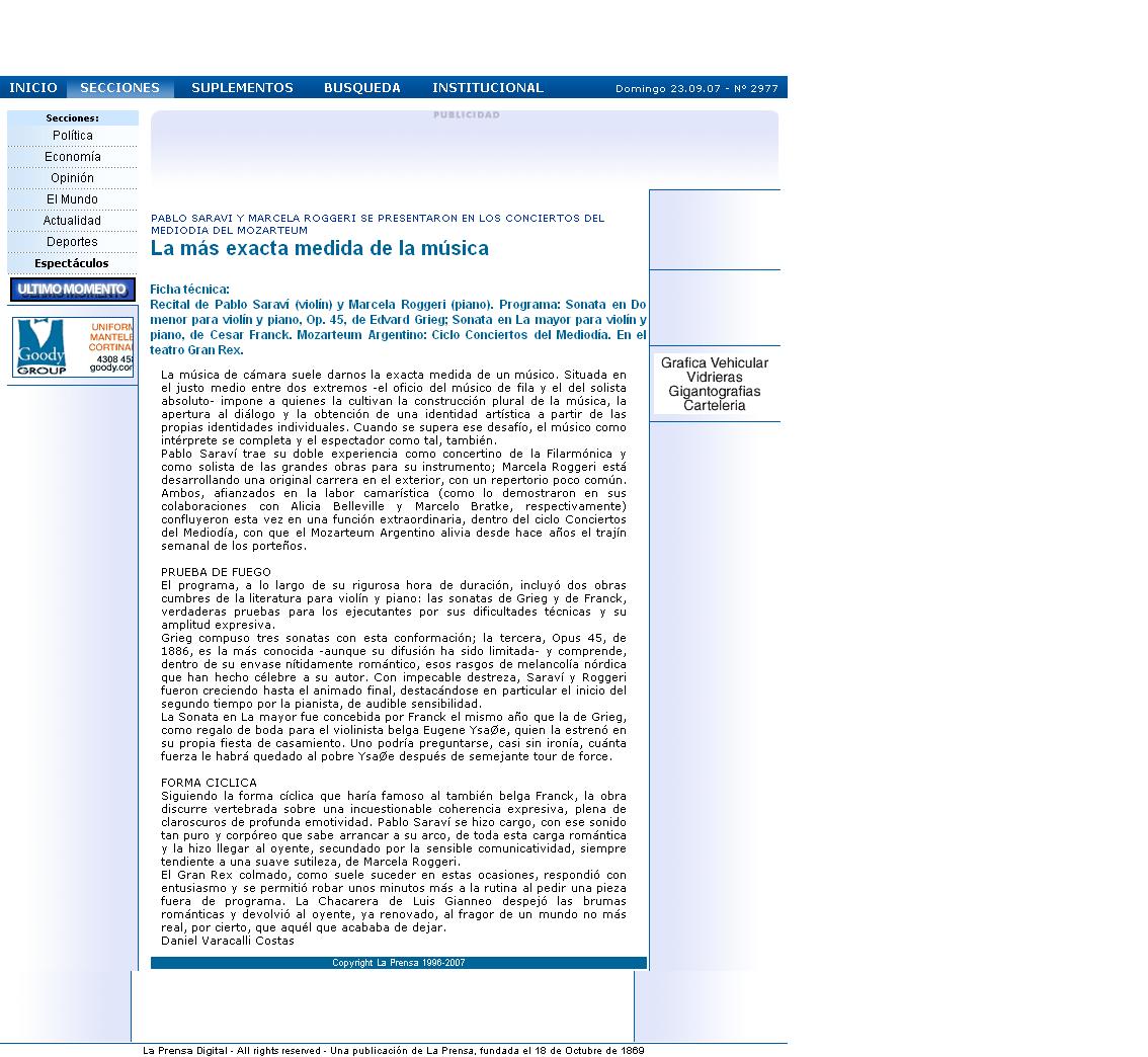 Diario La Prensa (Buenos Aires), 23 de Septiembre de 2007